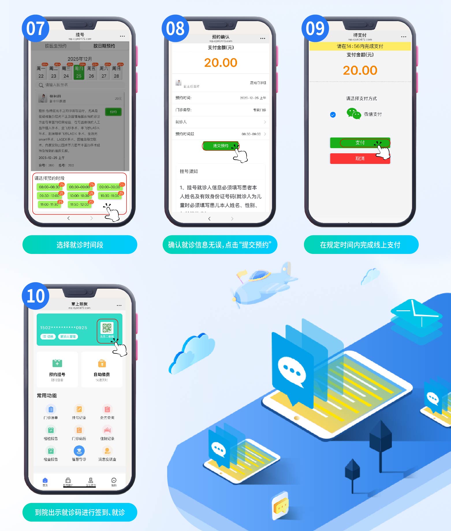 為方便患者提高預(yù)約就診效率,所有門診均可線上掛號,您可通過以下官方渠道進(jìn)行初診及復(fù)診預(yù)約: